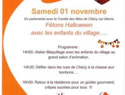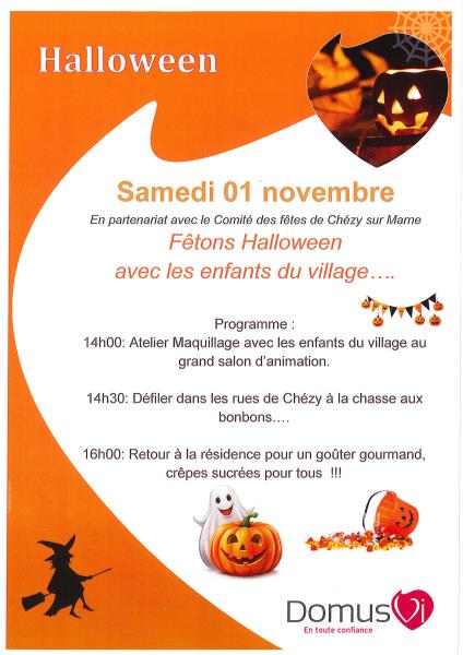 En partenariat avec le Comité des Fêtes de Chézy sur Marne, nous participons à la fête d'Halloween proposée pour les enfants du village. Si vous souhaitez nous rejoindre nous vous donnons rendez vous le samedi 01 novembre à partir de 14h00 à la résidence.