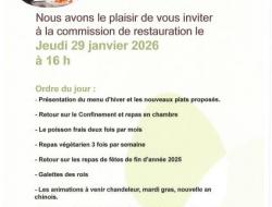 Nus vous invitons le jeudi 29 Janvier à 16h00 pour la première Commission des Menus de l'année.