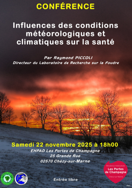 Le samedi 22 novembre 2025 à 18h, la Résidence Les Portes de Champagne accueillera une conférence passionnante intitulée « Influences des conditions météorologiques et climatiques sur la santé », animée par Raymond PICCOLI, Directeur du Laboratoire de Recherche sur la Foudre. Organisée en partenariat avec l'association Alzheimer Sud Aisne, cette rencontre vise à sensibiliser le public aux impacts souvent méconnus des phénomènes météorologiques sur notre bien-être.