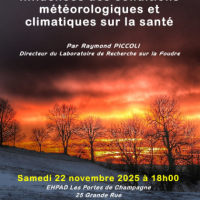 Publiée le 16/10/2025Le samedi 22 novembre 2025 à 18h, la Résidence Les Portes de Champagne accueillera une conférence passionnante intitulée « Influences des conditions météorologiques et climatiques sur la santé », animée par Raymond PICCOLI, Directeur du Laboratoire de Recherche sur la Foudre. Organisé [...] Lire la suite